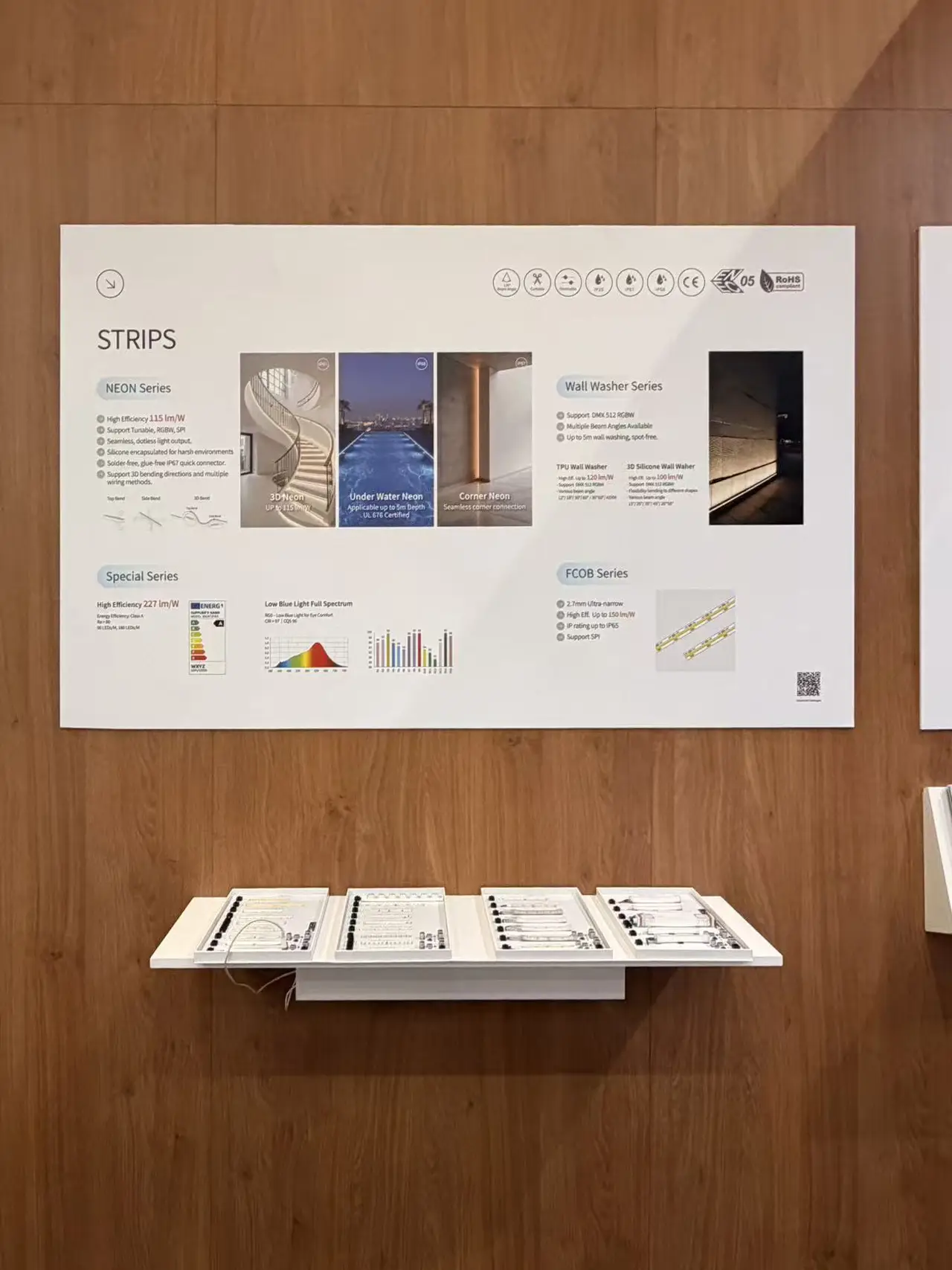 Complementing this, our specialized LED Strips include the Neon Series, which provides dotless light output and silicone encapsulation for durability in harsh environments, including underwater applications up to 5 meters deep. From ultra-narrow 2.7mm FCOB options to high-efficiency Class A strips reaching 227 lm/W, our linear solutions support advanced DMX 512 RGBW control and flexible 3D bending to empower creative and sustainable lighting designs.